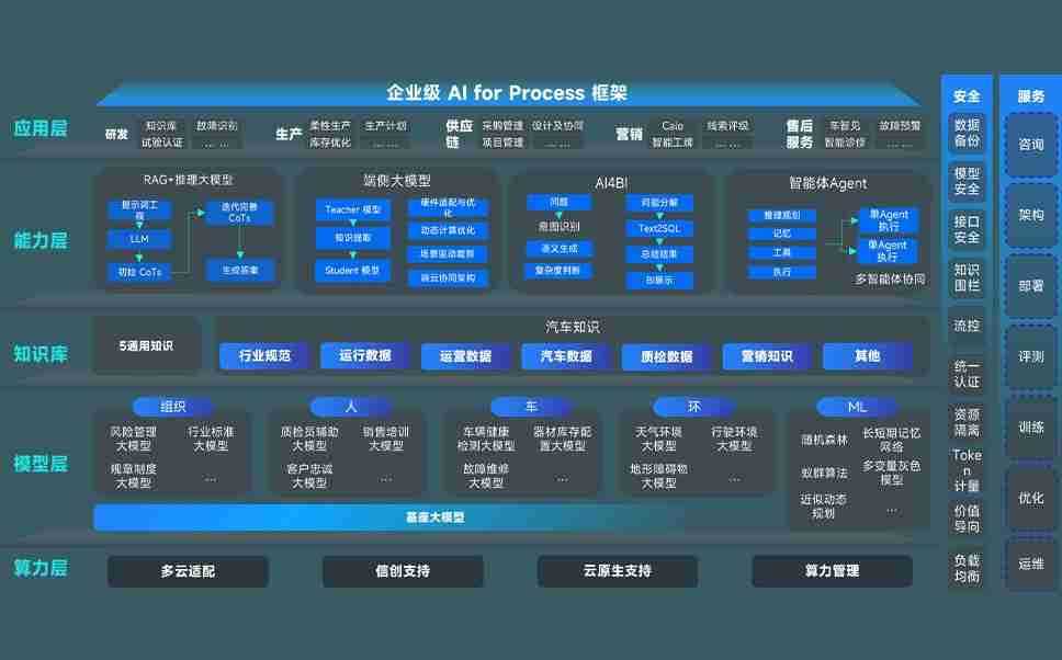 端到端的一站式AI工作空间深度融合了从企业战略规划到日常经营的全流程业务板块,,,定向解决车企内部领域多、、、、部门多、、、链条长、、场景碎片化等难题,,支持车企快速构建以AI为核心的生产力写作体系,,实现任务执行与AI能力的无缝集成与交互